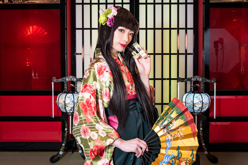 “京美人”赤井沙希が着物に身を包み抹茶味のVAPEを世界にアピール!