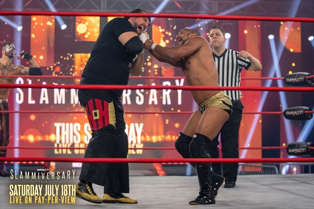 今回の放送では、自分こそが団体最高峰王座を保持しているとインパクト・レスリングの以前の団体名であるTNA世界ヘビー級王座を復活させ、王者と名乗っている怪物ムースが、次回PPV大会「スラミバーサリー2020」で防衛戦を行う相手、トミー・ドリーマーと前哨戦を行った。ドリーマーのパートナーはクレイジー・スティーブと発表されていたが、ムースのパートナーはXとなっており、誰と組むのかが注目されたが、ムースのパートナーはロヒット・ラジュだった。そして両チームが激しくやり合う展開となるが、最後はドリーマーとムースが場外で戦っている間に、リングではスティーブとラジュの一騎打ちとなる。そこでスティーブがダイビングDDTを決めてフォール勝ち。前哨戦はドリーマー組の勝利となり、王座奪取に向けて弾みをつけた形となった。