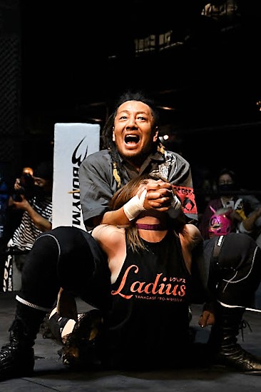 リング中央で大の字の状態で死んだように動かない有様の藤永だったがマイクを取って、若い頃に見て衝撃を受けた「アントニオ猪木vs.ビック・バン・ベイダー」の闘いを再現して見たかったと語り、
