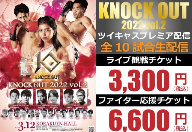 来る3月12日(土)後楽園ホールにて開催されるキックボクシングイベント『KNOCK OUT 2022 vol.2』の「ツイキャス」プレミア配信されることが決定。今大会も、通常の【ライブ観戦チケット:3,300円(税込) … 続きを読む 3月12日(土)『KNOCK OUT 2022 vol.2』ツイキャス ライブ配信決定!第4試合 クボ マサヤ vs.Apollo中山 インタビュー!