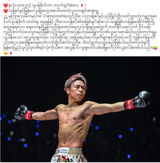 ▼ONE KO勝利の武尊が対戦相手の母国洪水被害に寄付!