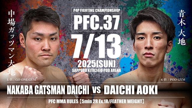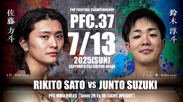 「Road To Next RIZIN 北海道大会」として、2025年7月13日(日)にPODアリーナにて「PFC.37 & STONES & ROOKIE」を開催する。