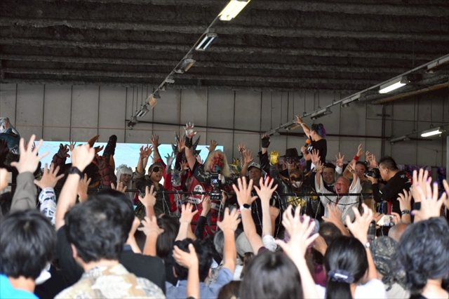 ※退場順:ザ・シャーク with 河崎実監督 → 本栖湖のUMA・モッシー with 中沢健 → 古代怪獣トイズキング with 宇宙ハンターBLAS