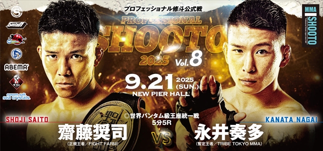 そしてその動向が注目された正規王者齋藤奨司は統一戦のオファーを迷う事なく快諾。これこそが真の王者の姿と言っていいだろう。昨年の7月21日に行われた後楽園ホール大会で“最も戦いたくない男”の異名を持つ藤井伸樹(ALLIANCE)との激戦を制し、世界王座を戴冠。今回はちょうど1年振りの試合となるが、その前の須藤拓真戦の際にも1年2ヶ月のブランクがあったが世界王者となっており、齋藤にとって実戦とは試合数をこなすことではなく、対峙する相手に対していかに自己を練り上げ挑むかであろう。そんな齋藤にとって最強対戦相手、永井は相手にとって不足なし。毎年数え切れないほどの選手がデビューし、篩にかけられ、サバイブしていく事すら困難なタイトル戦線。そのパイの大きさゆえ、最激戦区と呼ばれる修斗バンタム級。その最強を決める“TOP of TOP”に相応しい二人によって統一される王座。“心技体”、“打倒極”全てが最高峰と言える、これぞ修斗と言われる様な試合展開が見れることは間違いないだろう。今大会の大トリに相応しい両者の一戦にご注目ください。