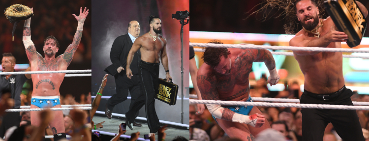 ここでセス・ロリンズがMITBの権利行使を宣言。レフェリーが認めてCMパンクとの世界ヘビー級王座戦が成立。ここからはあっと言う間の出来事で、ベテランのジョージ・ナポリターノもフィニッシュのカーブ・ストンプは抑えられてない。もっともTV画面を見ている視聴者にとっても、「え? これで終わりなの」という感じなのだから、恐らく予定の大会時間をオーバーしていたので急がせたのだろう。