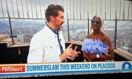 オフレコ 極めつけがマイク・ラノによると現地8月2日の西海岸時間朝7時の『NBC Today』でのサマースラムの宣伝。そりゃNBCグループは傘下にWWEを流す配信ピーコックを抱えるとはいえ、エンパイア・ステート・ビルディングの屋上展望台に着飾ったジェイド・カーギルを迎えた。司会がティファニー・ストラットンの女子王座への挑戦を語らせるなど、全部で5分間のセグメントを流したんだから恐れ入る。