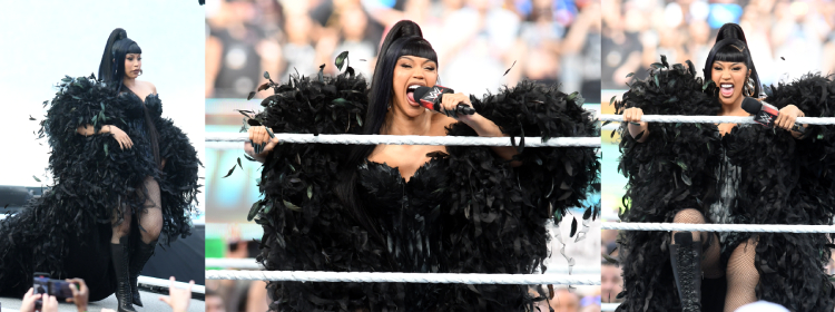 オフレコ 比較的大きな飛行機が3機飛んでメットライフ・スタジアム上空を通過すると、地元ニュージャージーのブレランドによる紹介で、ニューヨーク市出身のRapperであるCardi Bがお客を煽ります。すいません、二人とも知らない歌手でした。