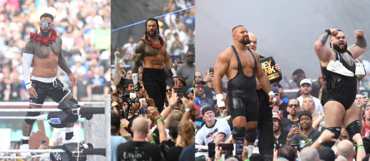 オフレコ ブロン・ブレイカーがタイツの両肩を外して、行くぞ!とばかり突進するスピアーはスタジアムに映えたとは思うけど、誰もがサモア組が勝利することミエミエのカードやからなぁ。『レッスルマニア』でさえ、第1試合にインパクトあるカードから始めてる構成パターンやってるけど、今回のはどうかなぁ。