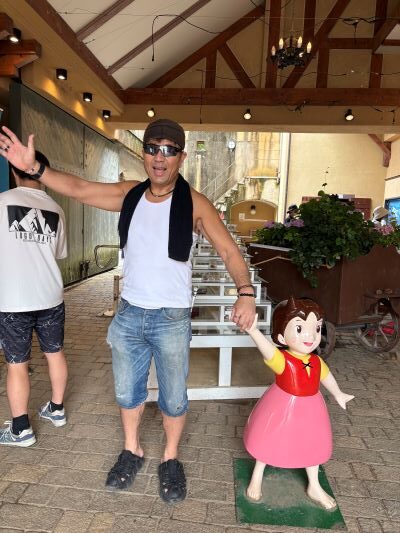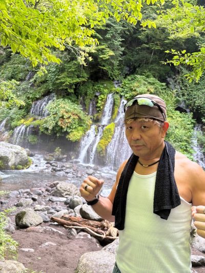 こんなことになっているとは露知らず、清里観光を楽しむタイヤファイト創始者の入江代表。