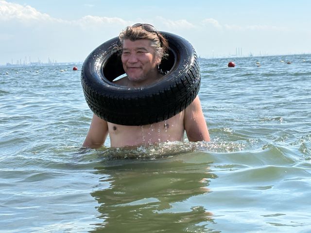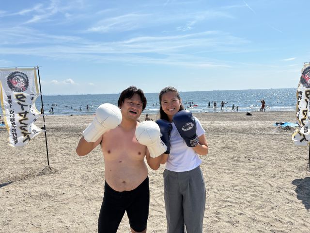 海岸沿いにある桟橋ではDJブースが設置され、オシャレな雰囲気で音楽と海を楽しむことができる。そこに突如現れた世界1近い距離の打撃戦、タイヤファイトの舞台である。興味津々で声をかけてくる人も多数いた。しかもこのイベントは千葉市から正式に許可を得ているということは驚きだ。