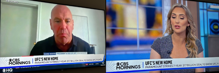 ―― そして翌朝のモーニング・ニュース。アメリカは午前中はエンタメ番組やらず、ニュース番組という長尺の大きな枠のなかでトランプから経済、エンタメ情報のコーナーと延々とニュース全般をやり、日本の昼から午後にかけてのワイドショー風なんですが、当事者でもあるCBSなんか、当然トップ・ニュースがUFC大型契約からで、その後も1時間の区切りごとに再びUFCの冒頭から初めて、合計で2時間もUFCやったとの報告です。