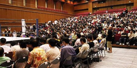 今年も、STARDOMの5★STAR GPが暑い夏を彩る! この日の神戸大会は、早くも10大会目。この日、主催者発表では満員となっているが、実際は後方と2階は使っていないので、満員という言葉は疑問だが、しかし上谷沙弥、なつぽい、スターライト・キッドなど半分の選手はこないこの大会で、昨年の501人をグンと上回り、689人となったのは喜ばしい事だ。
