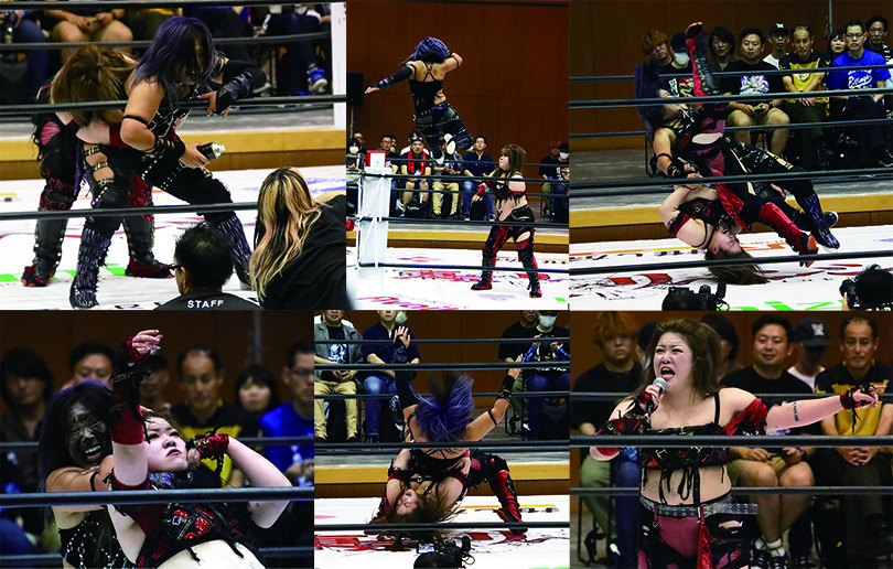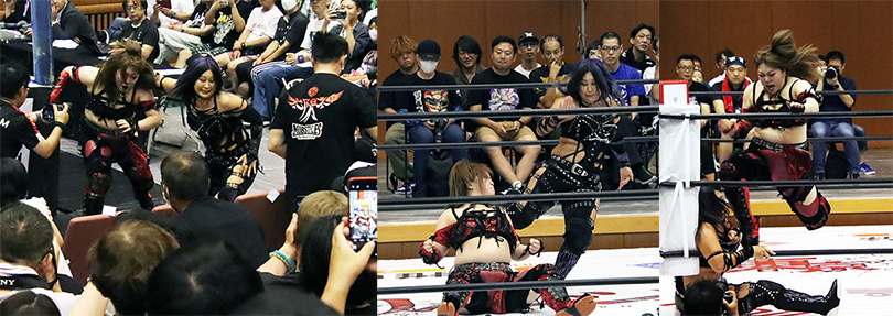 フィニッシュに繋げたいHANAKOは、アルゼンチン・バックブリーカーを狙うが、それを切り返したSareeeは延髄斬りからの卍固め、さらにそのままグラウンドとアントニオ猪木MOVEで勝利をもぎ取った。