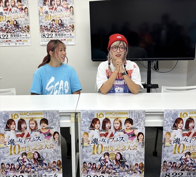 穂ノ利「『H.A.T.E.』がシードリングのリングに上がってきた時にバカにされたのがホントに許せなくて…自分が南月(たいよう代表)さんと(中島)安里紗さんに“H.A.T.E.と闘わせてくれ”って言ったんですけど、まだ1度も勝ててなくて…。こないだの(7・26)新木場大会もミリアと組んで負けてしまったんですけど、(試合後に)ミリアはどっかに行ってしまって…そんな時にウナギさんが来てくれて、同じ気持ちだってことを知って。なのでこのシードリング10周年記念大会でH.A.T.E.をつぶして、この大会で終わらせようと思ってます」