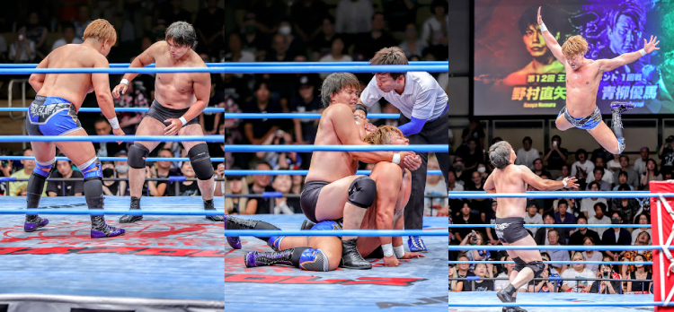 8月24日に後楽園ホールで行われた全日本プロレス「第12回 王道トーナメント」開幕戦において、野村直矢と青柳優馬が1回戦で激突した。両者は若手時代からタッグを組み、世界タッグおよびアジアタッグ王座を獲得した戦友でもあり、“ノムヤギ”の愛称で親しまれていたが、今回は正真正銘の一騎打ちとして3年ぶり18度目のシングル戦に臨んだ。