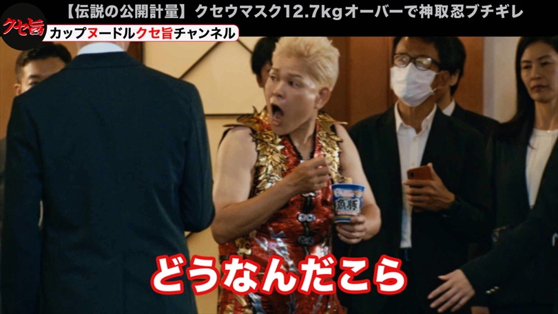 日清食品が2025年8月27日に公開した新CM「クセ旨公開計量篇」は、プロレスファンや格闘技ファンなら一度は耳にしたことがあるであろう、2017年末の「RIZIN」前日計量事件をオマージュした内容であり、その再現度と神取忍の迫真の演技で注目を集めている。このCMは新商品「カップヌードル 魚豚(ぎょとん)」のプロモーションを目的として制作されたものであり、映像の中では、架空の選手「クセウマスク」が12.7kgの体重超過をしながらもカップヌードルを食べ続け、かつて実際に同じような出来事に激怒した神取忍が再び怒号を飛ばすという、極めてユーモアに富んだ展開となっている。