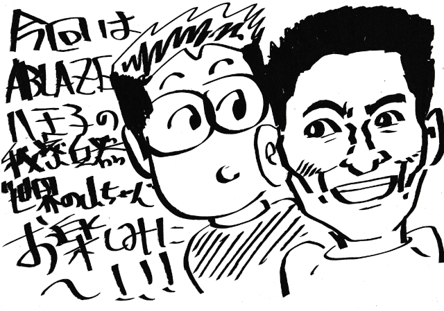 ▼格ヲタ似顔絵師 ケーシーの四コマ漫画劇場:ABLEZE八王子の秘密兵器!世界の山ちゃん