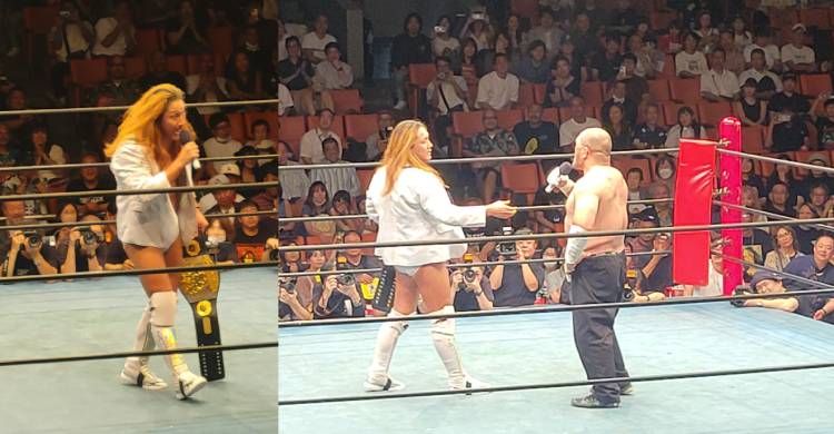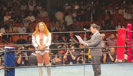 「今日から俺の謝罪の日々が始まるでしょう。ただ俺はなにも怖くない、なぜなら謝ってきた人生、そしてベルトゲット!」と絶叫すると、「ストロングスタイルのチャンピオン・ベルトがミスター・ノット・ストロングスタイルの俺の手に渡りました」と胸を張った。