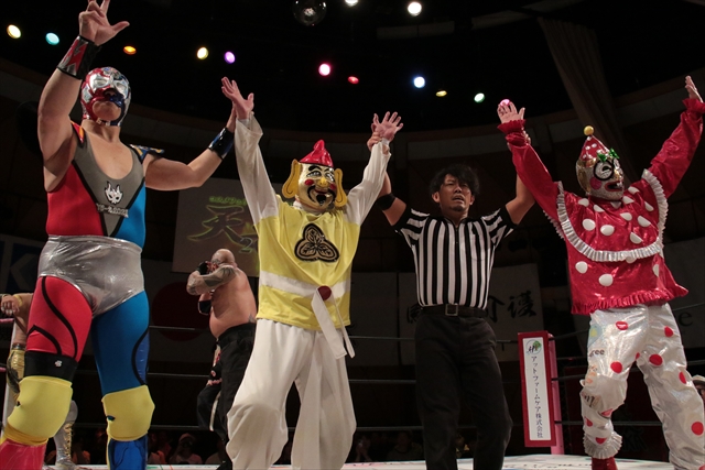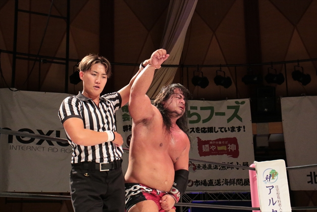 そこからはボディガーの猛パワーが爆発しそこからはいつもの展開に。最後はデルフィンとツバサが回転エビの体勢でシーソーゲームを繰り広げる。