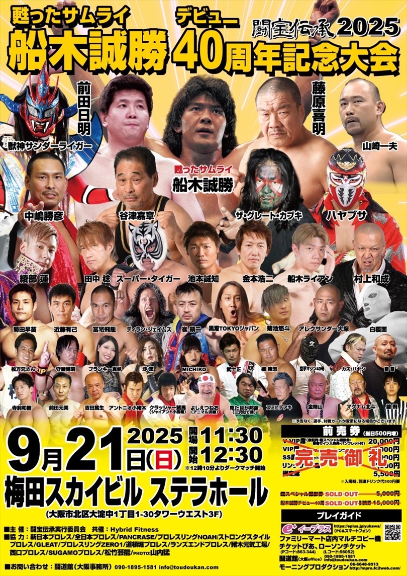 9.11ストロングスタイルプロレスでの船木誠勝選手の右肩負傷事故により、下記カードの一部が当日変更になる場合がございます。