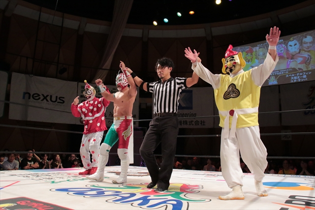 ※大阪プロレス本戦初登場のユタ・サンバのノリに観客も含め誰もついてこれない。仕切り直しでツバサとデルフィンがルチャの攻防を繰り広げると拍手喝采。終盤、ユタ・サンバがコーナーからヘッドシザーズを決めると大歓声。しかし、ユタ・サンバのノリに怒り心頭のツバサが怒涛の攻めでサンバを仕留めて決着。