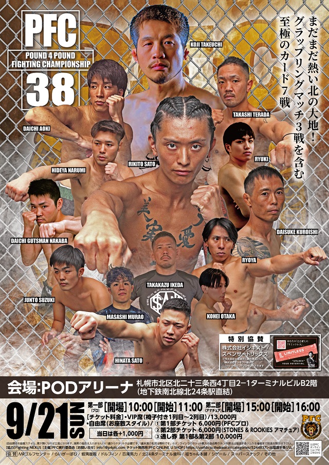 “北海道から世界へ 世界を北海道に”をスローガンにRIZINで活躍中の山本空良、修斗最年少王者西川大和などのキャリアスタートとなった北海道唯一の本格的なプロ格闘技リーグPFC 2025年秋の陣「PFC.38/STONES & ROOKIES」が、9月21日(日)PODアリーナで開催された。