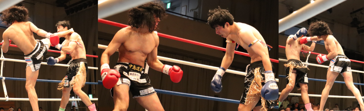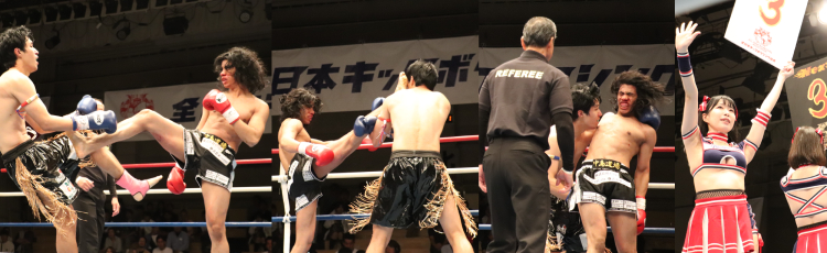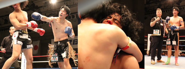 協会ホープの勇生が体調不良による欠場で代打参戦となったドミニカ共和国テコンドー王者の実績を砕き、韓国のアイドゥルが2Rと3Rにはスタンディング・ダウンを奪って流血に追い込むが、最後までジョカミ・ナカジマは立っていた。会場が最も沸いたカード。ジョカミの闘志に会場は惜しみない拍手を送っていた。