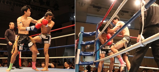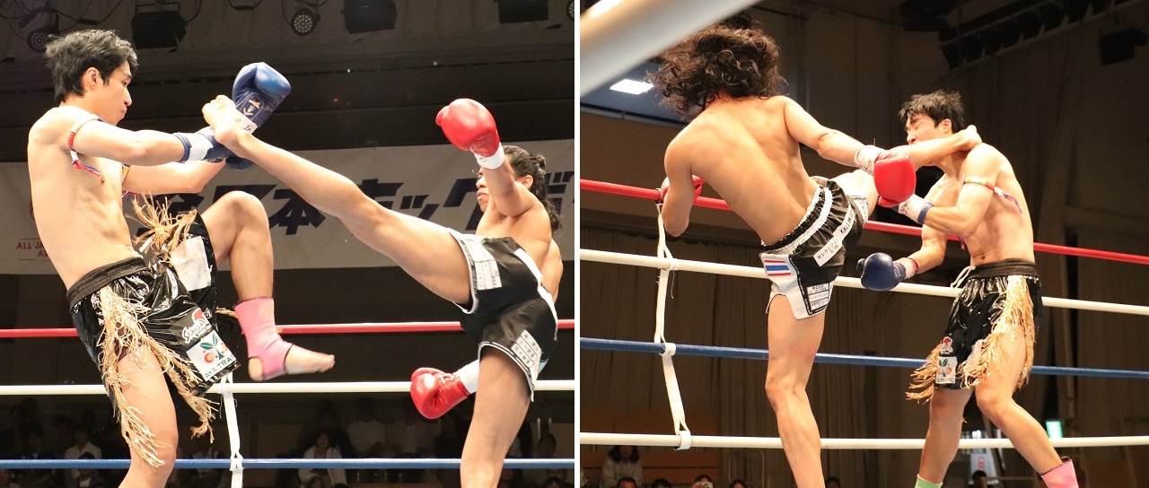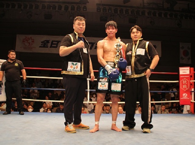 大将戦:全日本キックボクシング協会・王者の瀬川琉が、韓国プロムエタイ55㎏王者チョン・サンヒョンに1Rから得意の左ミドル、ローキック、左ストレートをヒットさせていき、2R以降ガードを固め防戦にまわった相手を倒すことはできなかったが、完勝で“格闘技に理解を示してくれている職場への感謝”を述べた。現在27歳だが、23歳からキックを続けられたのは環境があったからのようだ。