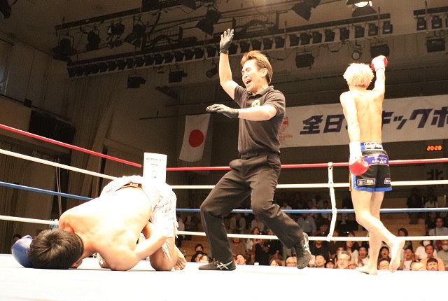 ・鮮やか野竹生太郎1R2分膝がレバー直撃のTKO!キム・ハヌル悶絶