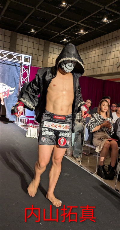 内山は試合前、「俺はプロレスラーだから相手の技は効かない。技を受けてから相手を仕留める」と宣言。恒例のマスク姿で入場し、リングを1周して観客を沸かせた。