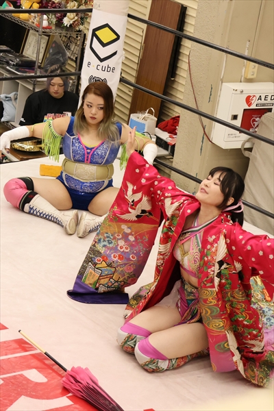 <第1試合 桃の爆裂vs蒼の衝撃 シングルマッチ 15分1本勝負>
