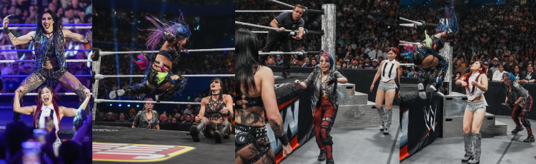 通常は2-3分だけの場合も多いTVマッチにも関わらず、メインのカードより長い16分の尺を貰い、激しい攻防を繰り広げたのだからお客さんも大興奮だ。もちろん、両国来襲でも行われるであろうリア・リプリー&イオ・スカイ組と、カブキ・ウォリアーズの抗争があるから、途中も、リアがリップタイドで仕留めて手が上がってからも、4人が入り乱れる。