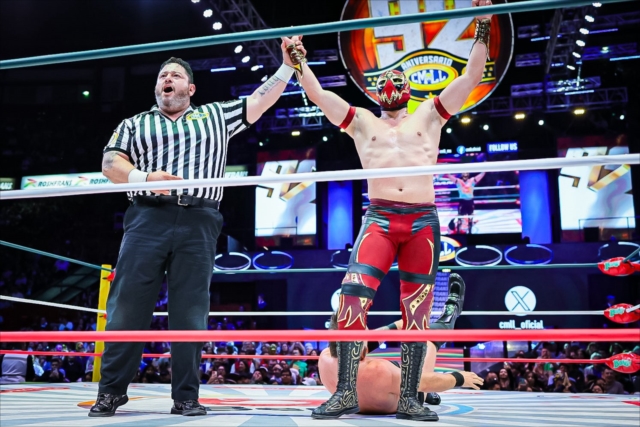 提携団体MLWから遠征してきたオースチン・エリーズをCMLL代表としてマスカラ・ドラダ(二代目)が迎え撃った。元TNA世界王者、元ROH世界王者という凄い実績を持つエリーズを相手にドラダがSSPでフォールを奪って勝利して、メキシコの強さを見せつけた。