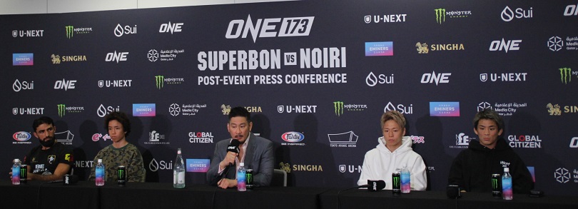 11月16日(日)東京・有明アリーナで開催された『ONE 173:スーパーボン vs. 野杁』。日本人キック系選手は4勝1KO4敗の戦績となった。(チャトリCEOを交えての試合後会見)