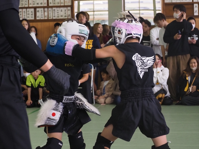 中学生以下最高峰のクラスであるJr.Aクラスでは45試合もの試合が開催、中でも30kg以下で激突した浅野仁 ( LoTgym )と筒井來絆 ( TeamFIST )の1戦では1R、ゴングと共に互いに前に出るとそのままに激しい打ち合いに、パンチ・蹴り共にヒットしヒットされという近距離での攻防が続いていく。2Rでもその構成は変わらない、細かいパンチを互いにヒットさせながらも筒井がハイキックを数発ヒットさせれば浅野は前蹴りに膝と打ち返すなど一進一退の攻防は続く。そんな至近距離での打ち合いは最終ゴングまで続く試合終了、判定は割れるも1-2、3分(1分30秒×2R)にも及ぶ止まらない打ち合いを筒井が制し判定勝利を収めた。
