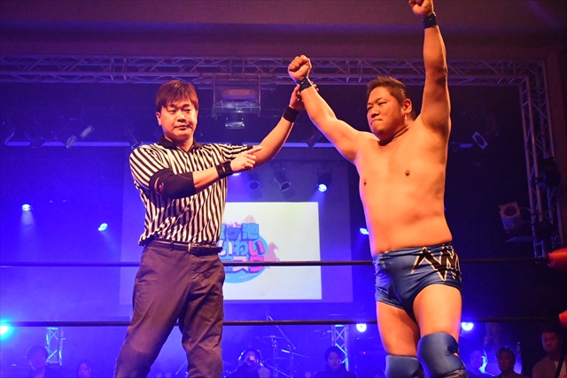 14分34秒 ダイビングWニードロップ⇒片エビ固め