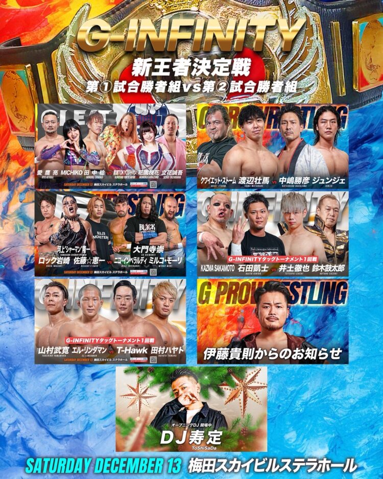 12月13日にGLEATの大阪が開催されるが、大会の全貌が発表された。目玉は、空位となっていたG-INFINITYタッグ王座の争奪戦として、4チームが参加し新王者を決定する。