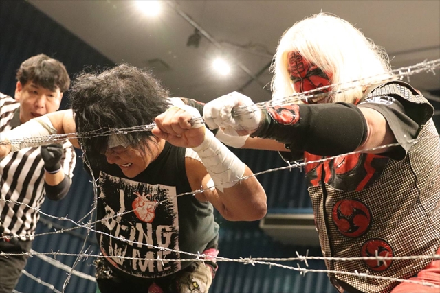 劣勢かと思われた大仁田組だったが、場外乱闘で流血した酒井の脳天を、追い討ちをかけるように大仁田がギターで打ち抜くなど、徐々に追い詰めていき、最後は有刺鉄線ボードに大仁田が酒井を沈め勝利した。