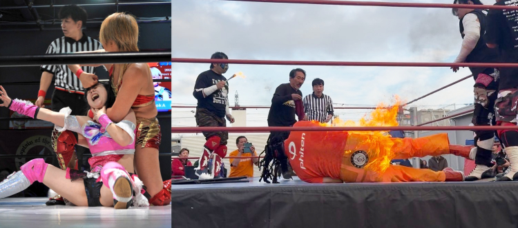 ザ・グレート・サスケ選手と大関代表がミスター・ポーゴ選手の火炎殺法で炎上する衝撃的な『博愛プロレス』🔥