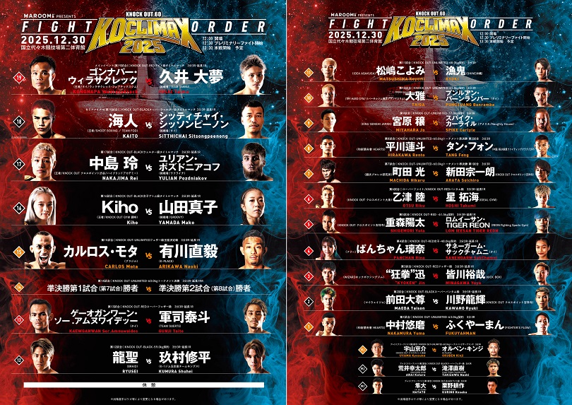 2025年12月23日付で改定。12月30日(火)MAROOMS presents KNOCK OUT.60 ~K.O CLIMAX 2025~から実施。