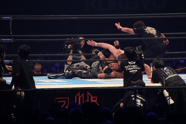 EVILの狡猾さはこの試合でも存分に発揮された。反則紛いの小細工とHOUSE OF TORTUREの介入で流れを掴み、ウルフをリング外へ追い出す場面もあった。このとき、ウルフはリング下でダメージを負い、試合序盤の主導権は明らかに王者側に傾いていた。