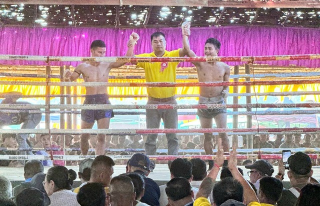 2026年1月10日から12日までの3日間、ミャンマー・カレン州の州都パアンにあるラインヴェ郡区で開催中のラウェイ大会。最終日3日め12日のメインはONE参戦中同士の対戦で、スーパー・ヤイ・チャンが最終5R2度のダウンを奪うが、粘るエー・ミウを攻略できず時間切れとなった。(トップ写真)