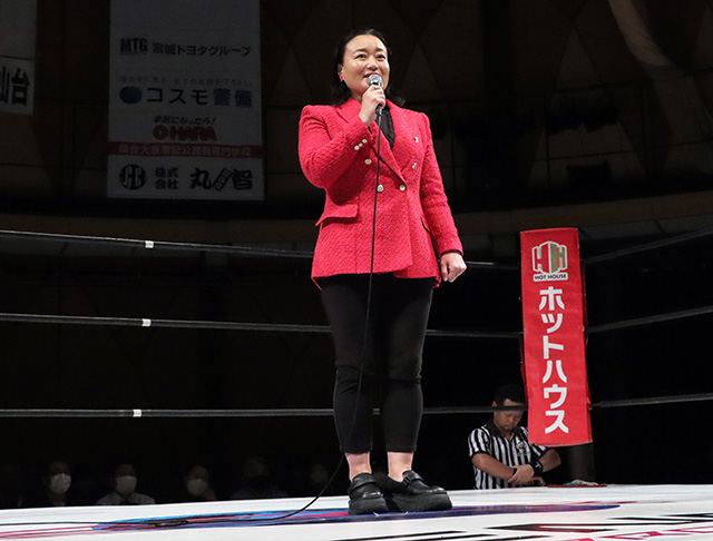 ベテランのDASH・チサコが第1試合となった。相手は、AlmaLibre所属の鈴木ユラ。ほぼ仙女の大会には参戦している。19歳ながらキャリア5年以上あり、蹴りを得意とするが、今年20周年となるチサコでは分が悪いか。健闘むなしく、ノーザンライトで仕留められた。