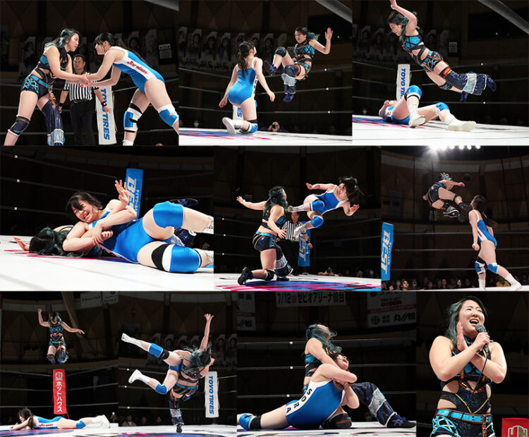 最後は、高瀬みゆきがトップロープからのギロチンで、叶から3カウントを奪い、地元大阪での凱旋試合は、見事に勝利を飾った。