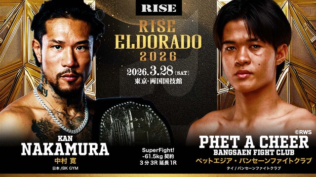 中村は2023年に第8代ライト級王座を獲得後、世界を視野に海外勢と対戦。2025年のWORLD SERIESを制して世界一の称号を手にした。2026年1月にライト級王座を返上し、新たなステージを示唆していた。対するペットエジアはタイで注目を集めるムエタイファイター。強烈なミドルキックを武器とし、若くしてビッグプロモーションで活躍する。今回が日本初参戦となる。