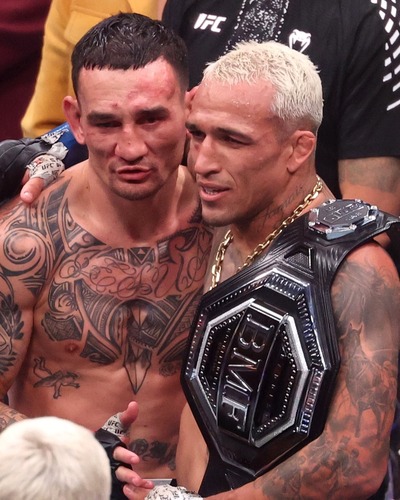 メインイベントはBMFライト級タイトルマッチ、5分5R。ライト級ランキング3位のチャールズ・オリヴェイラと、BMF王者で同級4位のマックス・ホロウェイが激突した。10年半前、負傷決着という形で終わった二人の最初の対戦。その“続き”とも言える再戦は、互いにキャリアの頂点を経験したファイター同士による大一番となった。