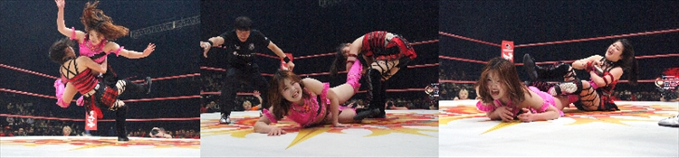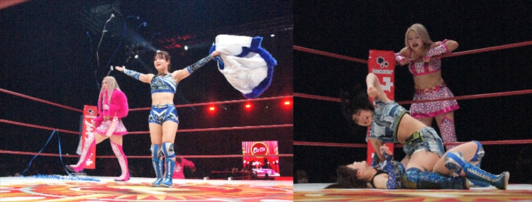 リングに上がったChiChiは、さらに体が大きくなり、プロレスで一番になろうという心意気が伝わってくる。叶ミクと藤原あむのエルボー合戦も迫力があり観客を唸らせたが、それ以上に戦前からChiChiが藤原あむに対し「改名したからって強くなるとは思わない」と挑発していた因縁もあり、里奈の厳しい蹴りとChiChiのフロントキックの応酬も迫力満点。