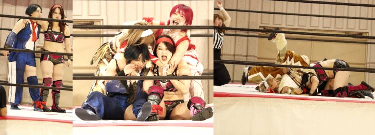 ポイントの多かった白組のぽむは1カウントフォール・ルール、ポイントの少なかった紅組の荒井は2カウントフォール・ルールが適用