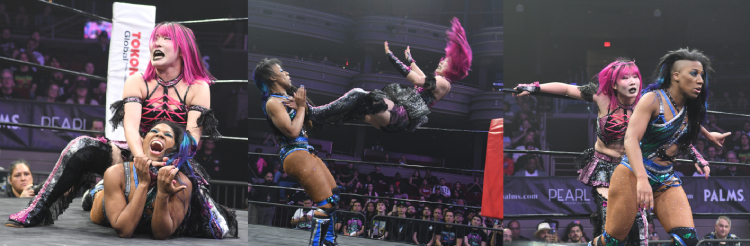▼STARDOM @ベガス吏南最高!岡田太郎にテクラ急襲-メインAEW対抗